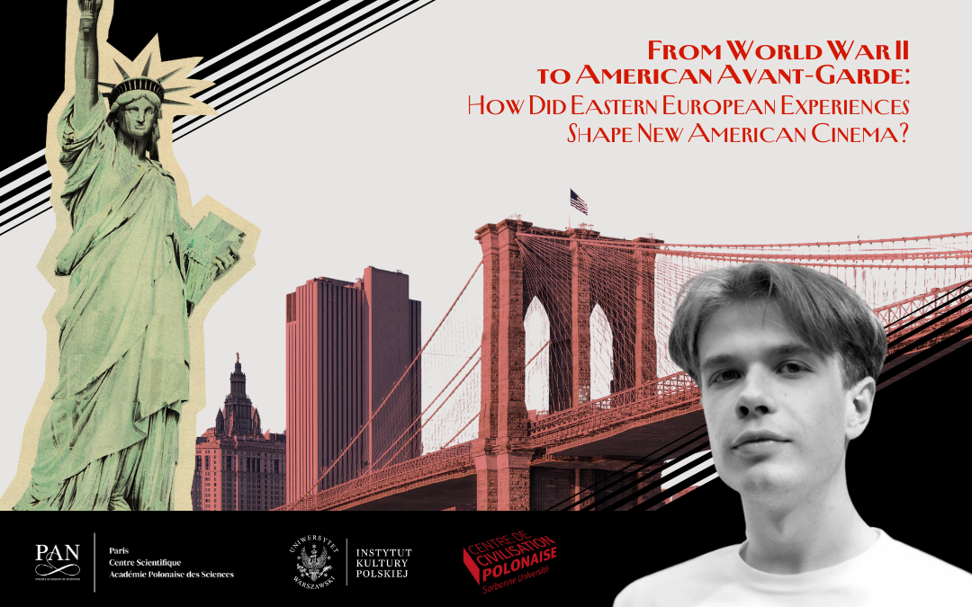 The Polish Academy of Sciences Scientific Centre in Paris invites you to the lecture From World War II to American Avant-Garde: How Did Eastern European Experiences Shape “New American Cinema”?, which will be led by Łukasz Kiełpiński (Institute of Polish Culture, University of Warsaw) – a PhD candidate at the Doctoral School of Humanities at the University of Warsaw, specializing in the beginnings of autobiographical film practices in the 20th century. Łukasz Kiełpiński has conducted research at the University of Toronto and at the IWM in Vienna, and has published in “Kwartalnik Filmowy” and “Kultura współczesna”. He is a fellow of the NCN grant “Odmieńcy. Performanse inności w polskiej kulturze transformacji” and a recipient of the Polish  Minister of Science and Higher Education Scholarship. He has won several awards, including first place in the Ewelina Nurczyńska-Fidelska Competition and an honorable mention in the Krzysztof Mętrak Competition.