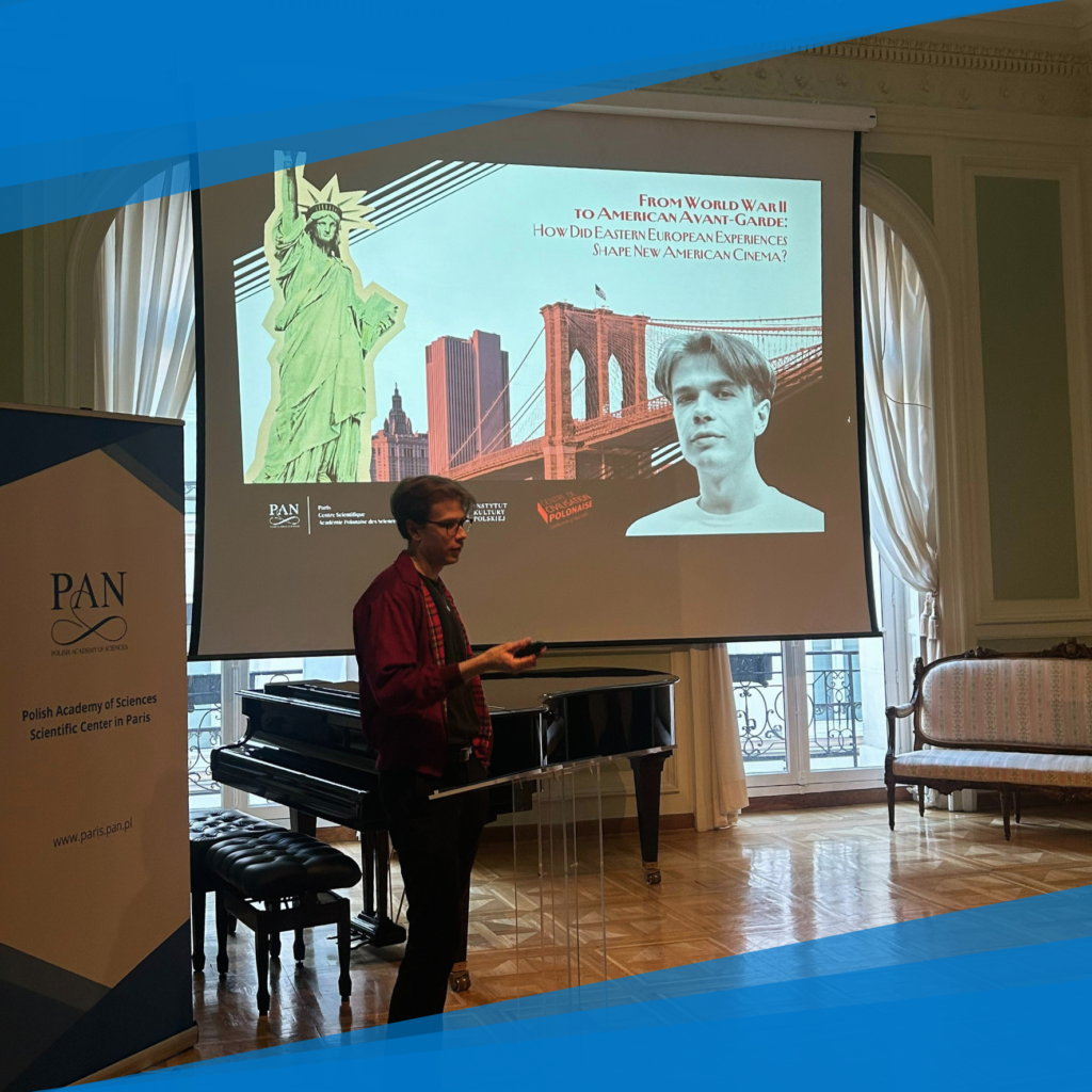 The lecture From World War II to American Avant-Garde: How Did Eastern European Experiences Shape “New American Cinema”?, held on April 10, 2025, and delivered by young scholar Łukasz Kiełpiński (University of Warsaw, University of Toronto), focused on the influence of Eastern European migrants’ experiences on the formation of New American Cinema, as well as on the broader context of postwar avant-garde film in the United States.