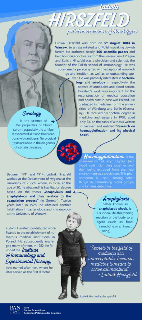 The exhibition about Ludwik Hirszfeld, which was presented this year at the PAS Scientific Centre in Paris, is now available on our website. We encourage you to learn more about the history of this, rather forgotten, Polish physician and scientist, who had an enormous impact on the progress of medicine at the beginning of the 20th century.